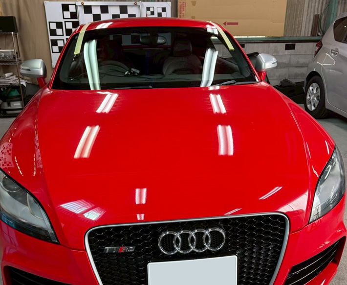 自動車ガラス交換、アウディ TTRS フロントガラス交換(純正ガラス)施工で入庫。