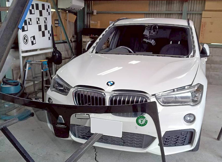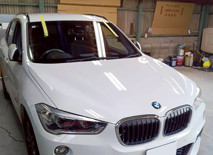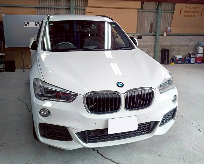 自動車ガラス交換、BMW X1 フロントガラス交換(純正ガラス)施工で入庫。