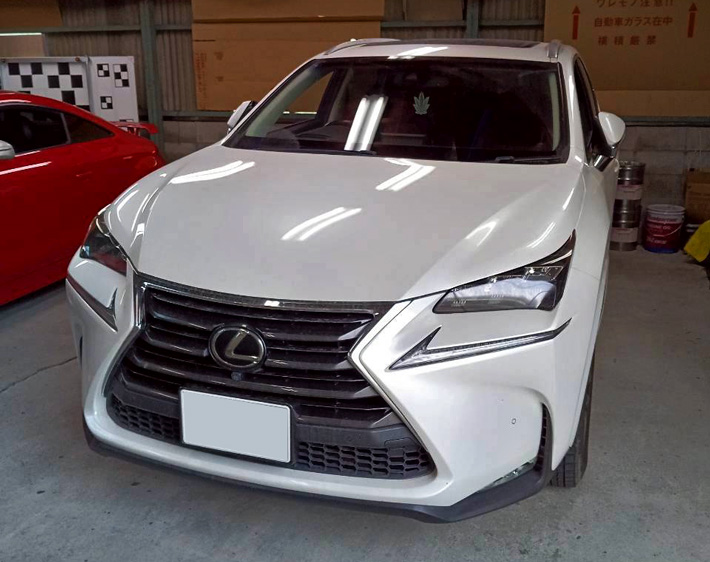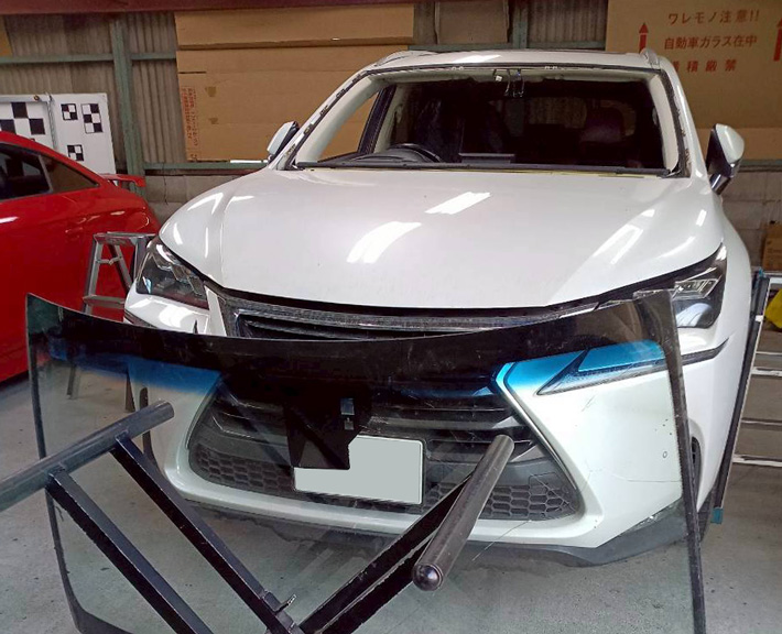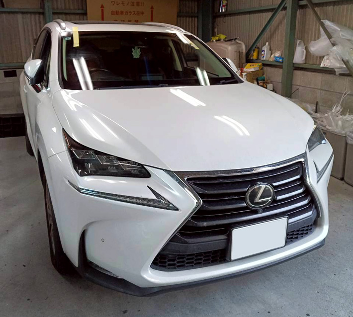 自動車ガラス交換、レクサス NX フロントガラス交換(輸入ガラス)施工で入庫。