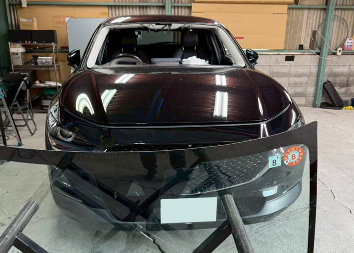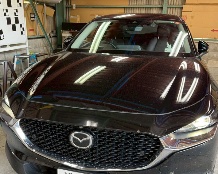 自動車ガラス交換、マツダ CX-30 フロントガラス交換(輸入ガラス)施工で入庫。