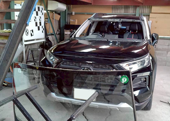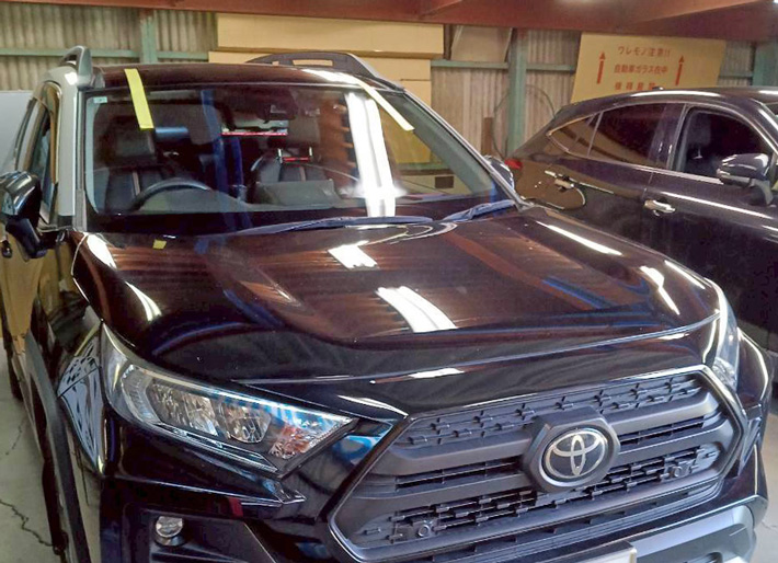 自動車ガラス交換、トヨタ RAV4 フロントガラス交換(輸入ガラス)施工で入庫。