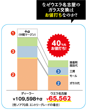 これによりお車ごとに一番お安く仕入れることのできるルートからガラスを購入できます。
